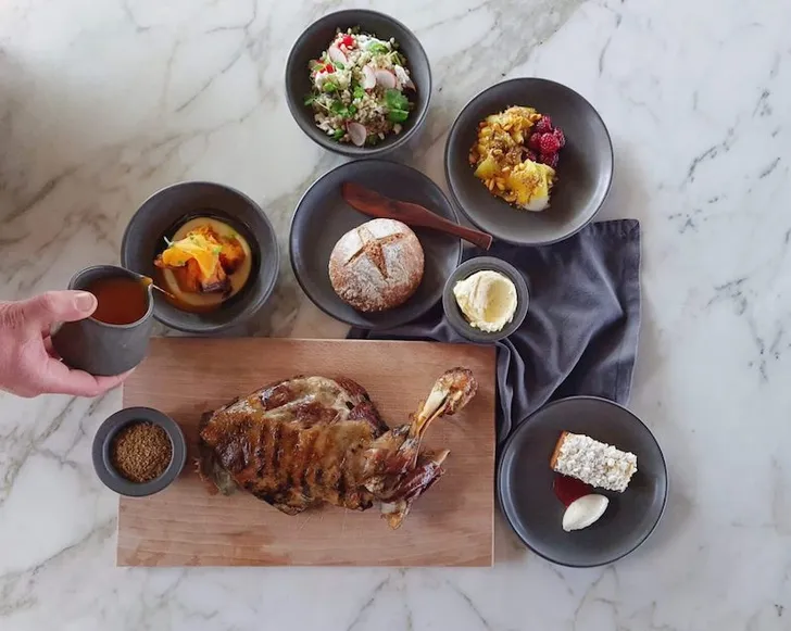 Ook leuk: het hele menu (te bestellen per twee personen, voor 70 euro voor het menu met lamsschouder en 50 euro voor het vegetarische menu met bloemkool) kun je direct opeten, maar ook twee dagen bewaren in de koelkast. Even opwarmen in de oven, en hoppa: Pinksterfeest!
