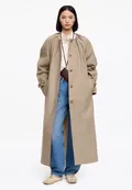 Behalve de halslijn is de trenchcoat verder heel klassiek. De oversized pasvorm en raglanmouwen geven 'm een modern en comfortabel gevoel, terwijl de neutrale beige kleur ervoor zorgt dat je deze jas met letterlijk alles kunt combineren. Draag hem nonchalant open of knoop de ceintuur strak voor een elegante look. De verstelbare mouwbandjes en de split aan de achterkant zijn van die details die het ontwerp helemaal afmaken.
