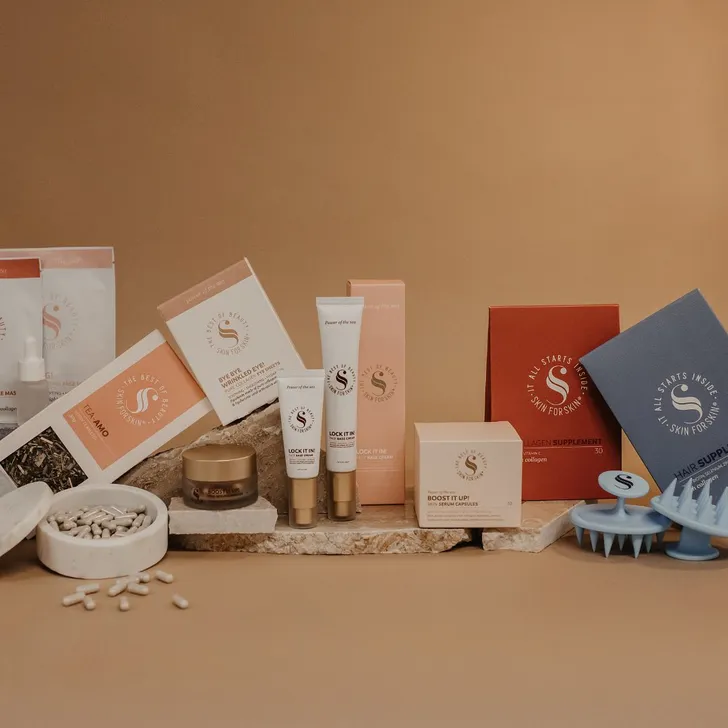 Ook fijn voor huid en haar die wild en meeslepend vakantie hebben gevierd zijn de Collagen en Hair supplementen van Skin for Skin die de schade van binnenuit aanpakken. Er is eentje voor de huid en eentje voor het haar, elk speciaal samengesteld om de boel te 'plumpen'. De basis is 100% natuurlijk viscollageen, duurzaam en gepatenteerd.