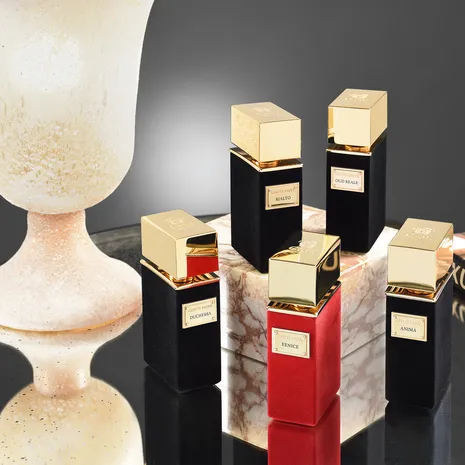 De Gritti Privé Collection bestaat uit Anima (exotisch fruit), Duchessa (warm en kruidig), Fenice (aqua en licht fruit), Oud Reale (zwoel met een vleugje harem), Puro (crispy met appel en lelietje van dalen), Rialto (bergamot en bloemen) en Seta (sexy in het begin, warm in de basisnoten). Vanaf 290 euro per flesje.