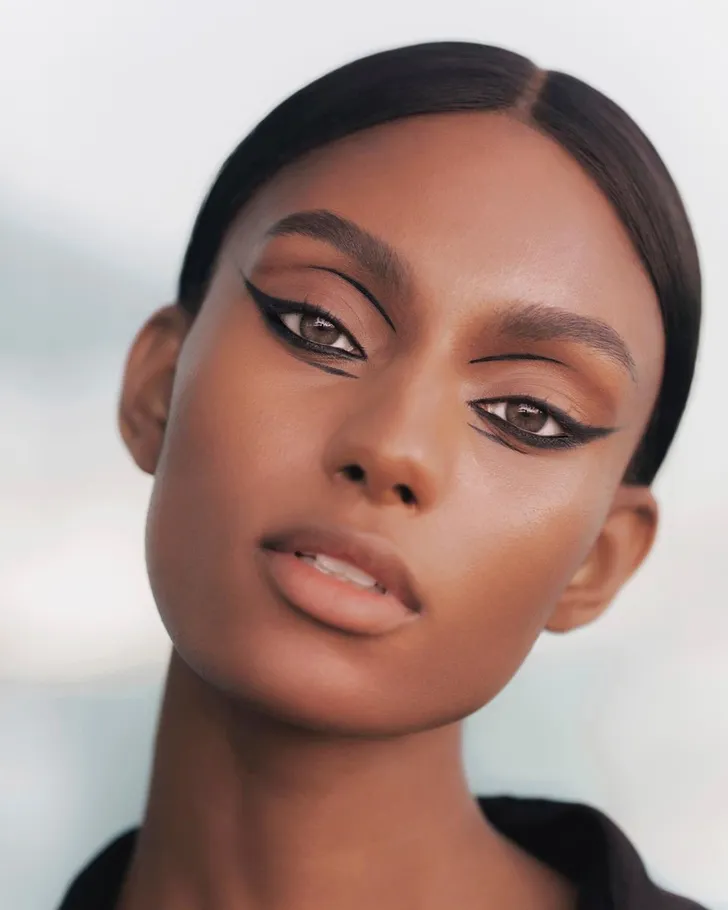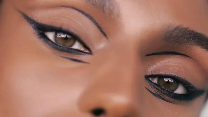 …maar een andere, iets subtielere trend is die van de floating eyeliner, ofwel zwevende eyeliner. Het is een look die al eeuwen in zwang is: zelfs Cleopatra was er dol op. Je zet – huid even straktrekken, vaste hand geen overbodige luxe - een lijn tot halverwege de oogboog, zowel boven als onder je oog.