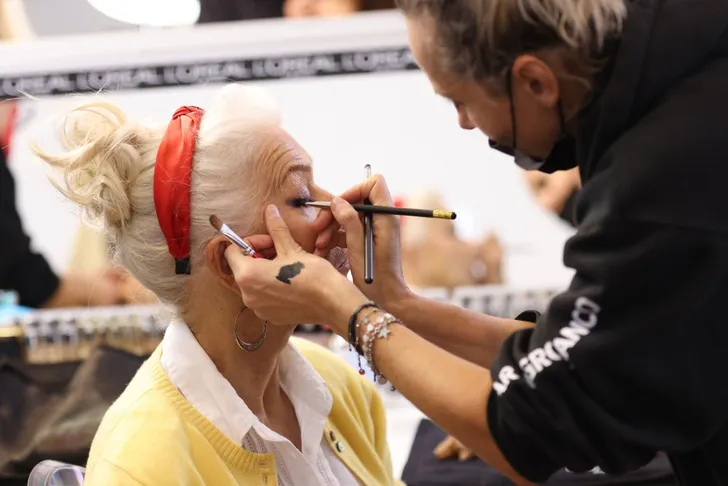 Actrice Helen Mirren - ze arriveerde in een adorable vestje -leidde het gezelschap ambassadeurs in Le Defile L'Oreal Paris 2021 dat de 50ste verjaardag van de slogan 'Omdat je het waard bent' vierde.