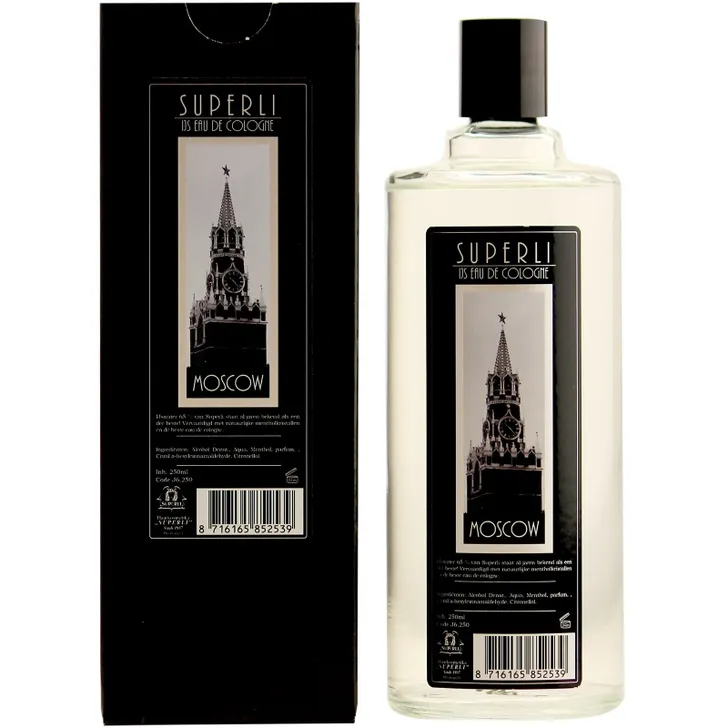 Ice Eau de Cologne Superli Moscow op basis van 65% alcohol en mentholkristallen is eigenlijk een vintage haarwatertje, maar ook verrukkelijk als ijs-eau-de-cologne.