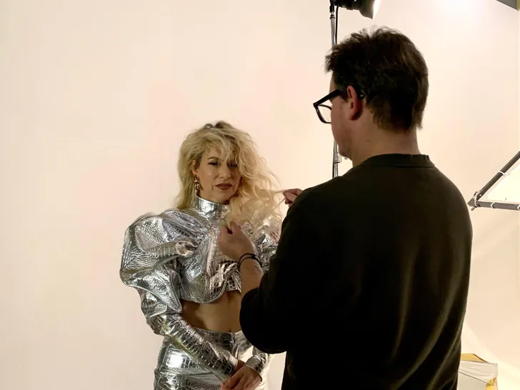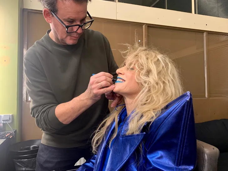 ‘Ik heb bijna iedereen in het wereldje weleens opgemaakt, maar Ellen ten Damme nog nooit. Ik vond het dus ontzettend leuk om met haar deze shoot te doen. Het heerlijke van werken met performers als zij is dat ze heel expressief zijn. Ze kan een make-up echt dragen. In dit geval zijn we helemaal losgegaan met het thema metallic, dat natuurlijk erg hot is nu. De styling heeft uitgepakt met zilver en samen met de make-up was dat echt super. Alles kwam bij elkaar.’