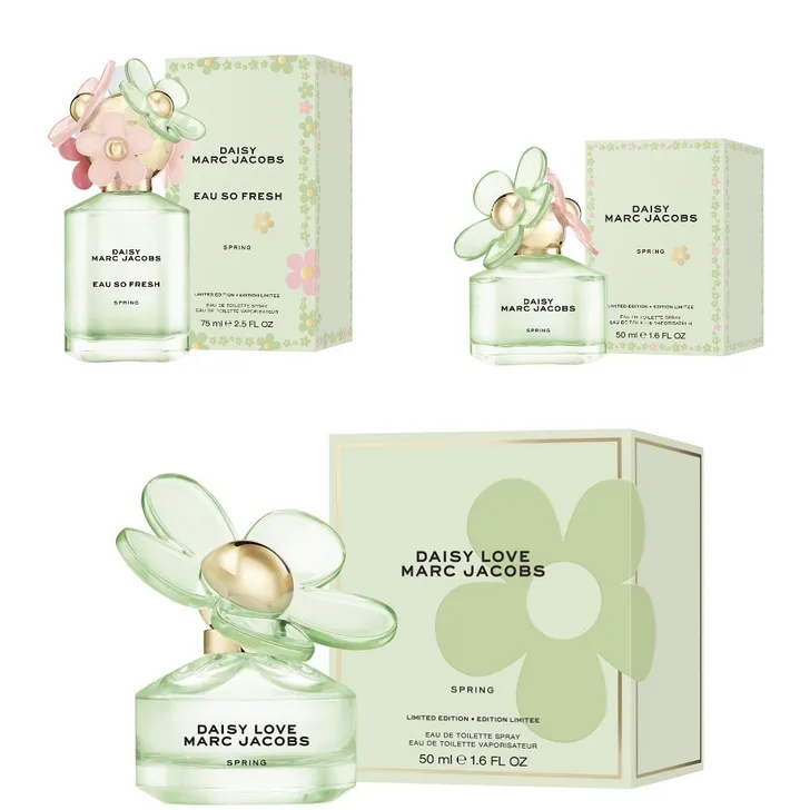 Dit jaar gaat het om drie limited editions: Daisy Spring, Daisy Eau So Fresh Spring en Daisy Love Spring. Allemaal feelgood geuren met een twist op de klassiekers: fris groene elementen, gecombineerd met vrouwelijke roze en vanaf nu verkrijgbaar.