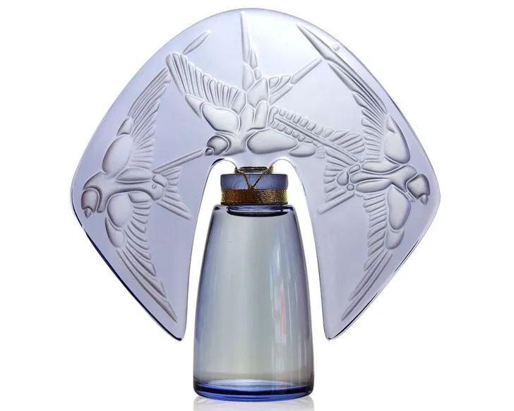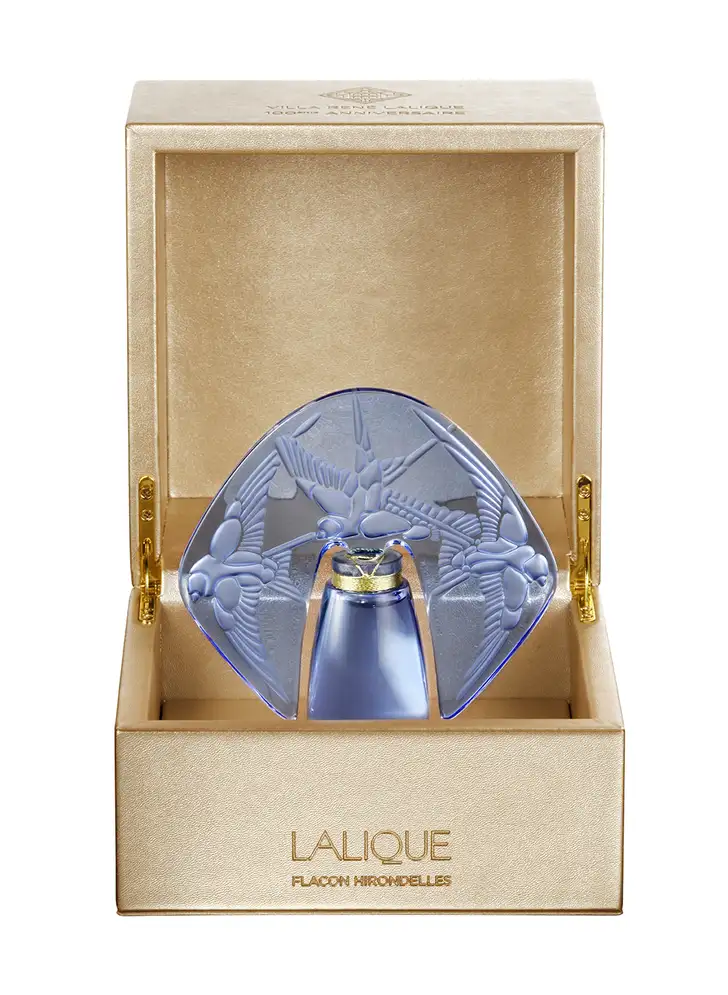 ...met het parfum in de Hirondelles-flacon die Lalique 100 jaar geleden ontwierp, met zijn favoriete onderwerpen – flora, fauna en vrouwelijke vormen – als inspiratie.