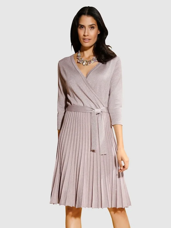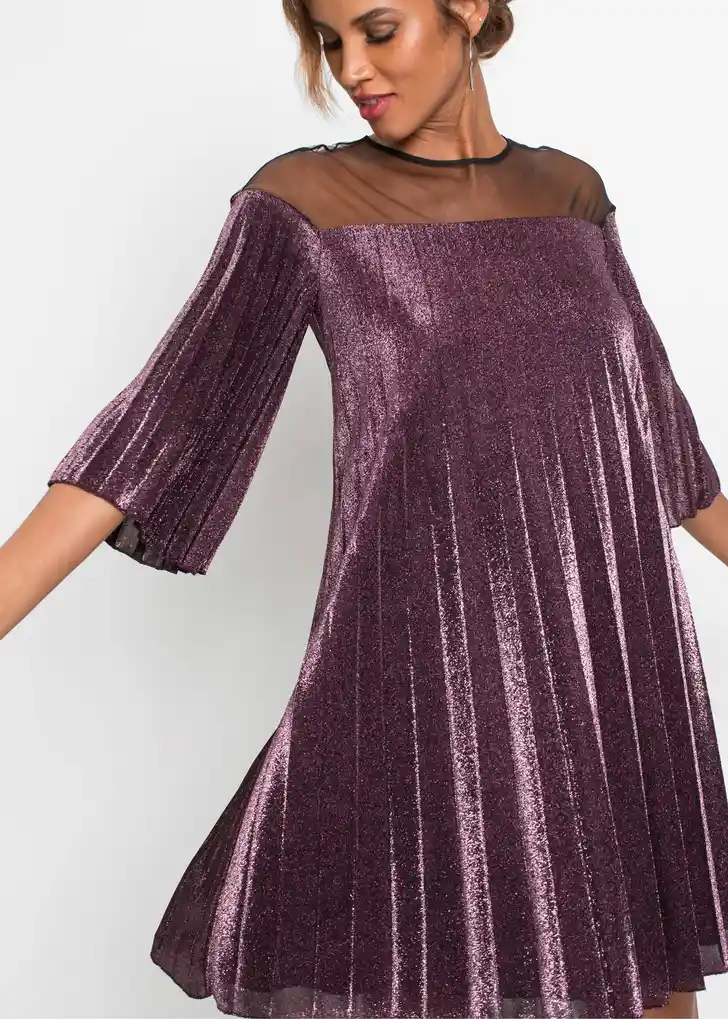 Glinsterende plisséjurk van Bodyflirt (Bonprix € 49)
