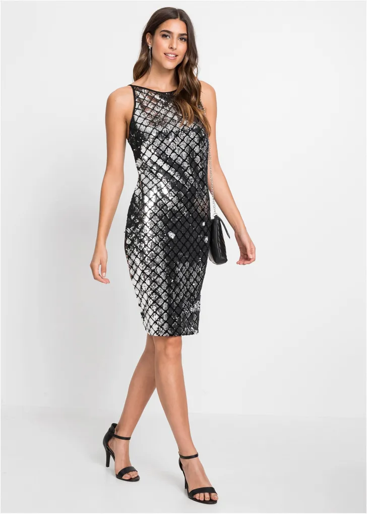Jurk met pailletten van Bodyflirt (Bonprix € 38)