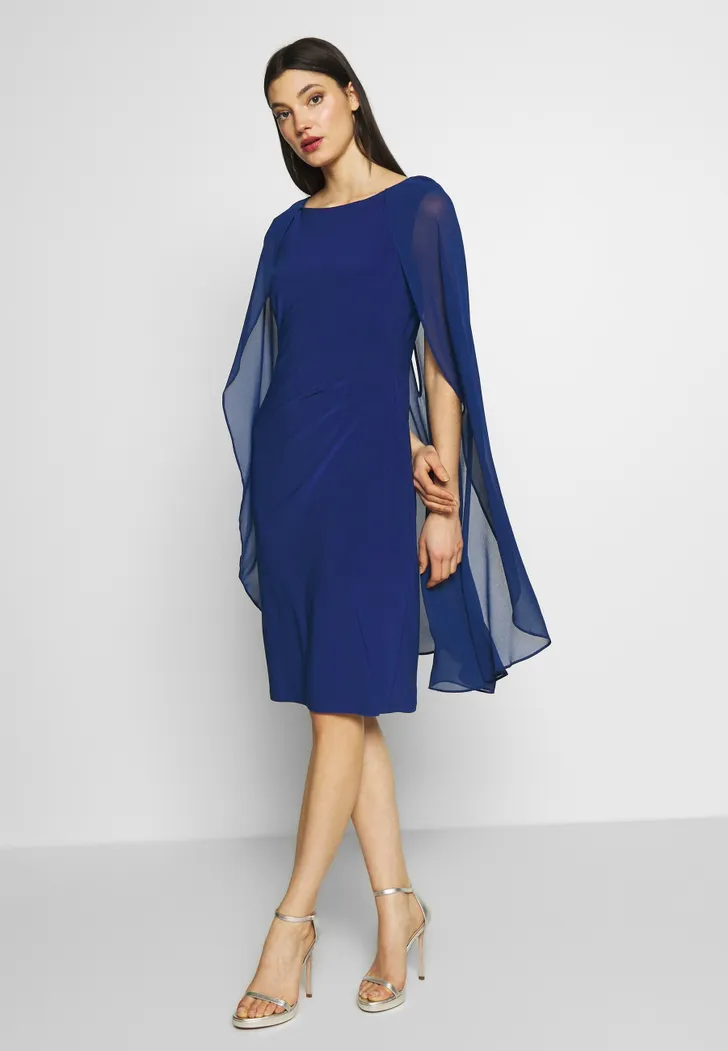 Blauwe cocktailjurk van Lauren Ralph Lauren (Zalando € 250)
