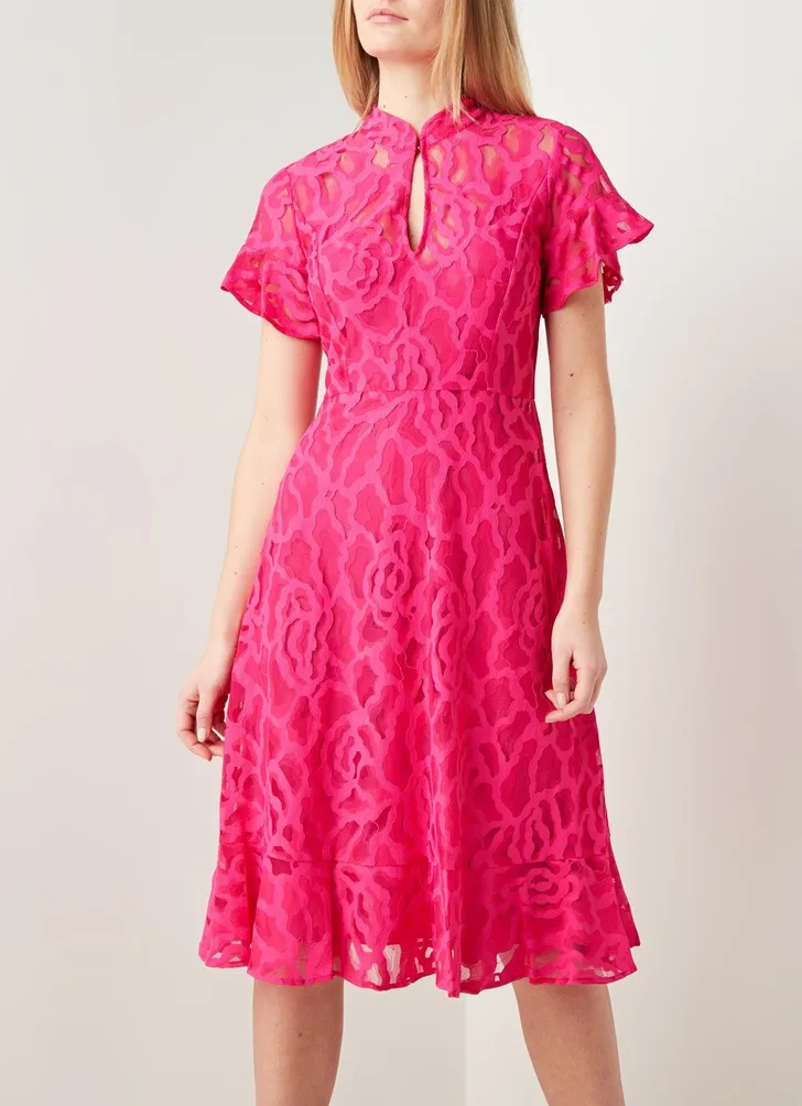 Lulu midi jurk van kant met keyhole van Damsel in a Dress (Bijenkorf € 140, ook verkrijgbaar in kobaltblauw)