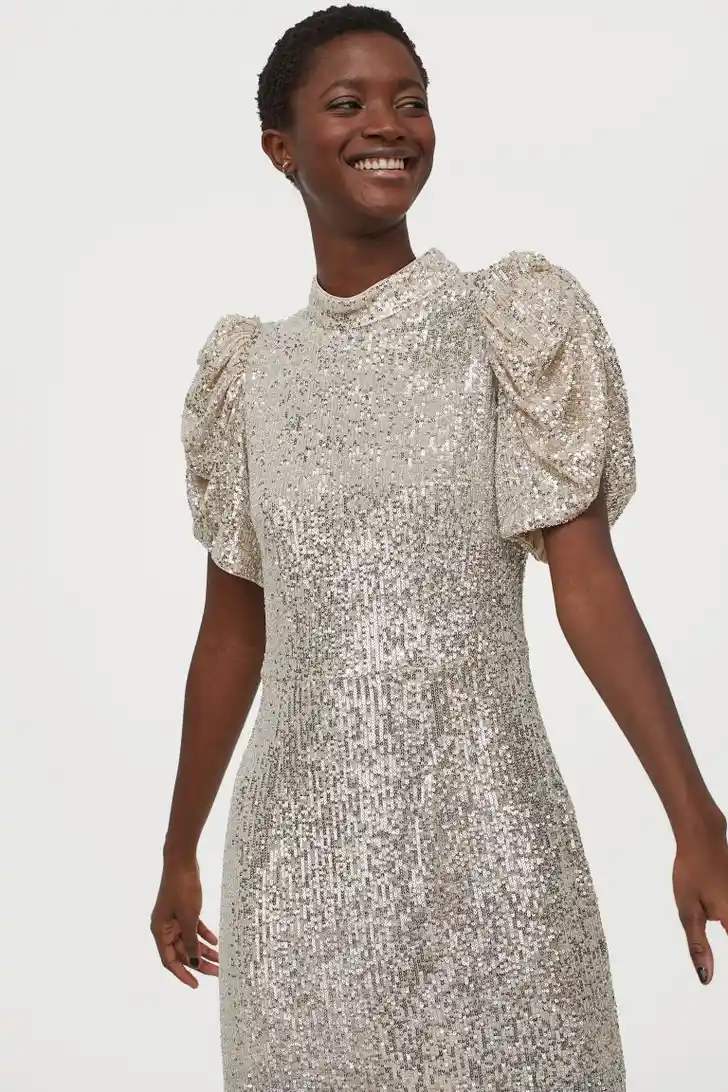 Zilverkleurige jurk met pailletten (H&M € 40)
