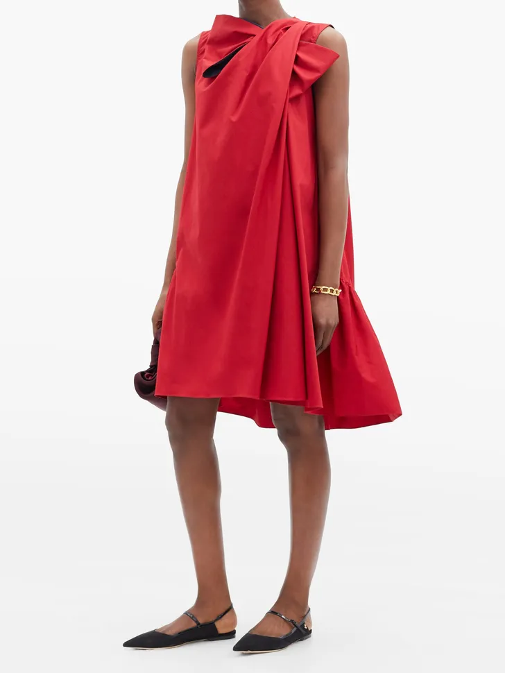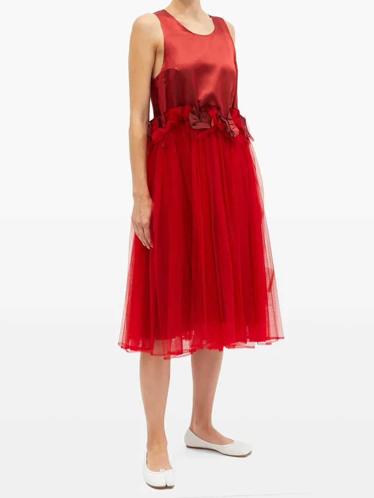 Rood satijnen cocktailjurk van Noir Kei Ninomiya met tulen rok (Matches Fashion € 746)