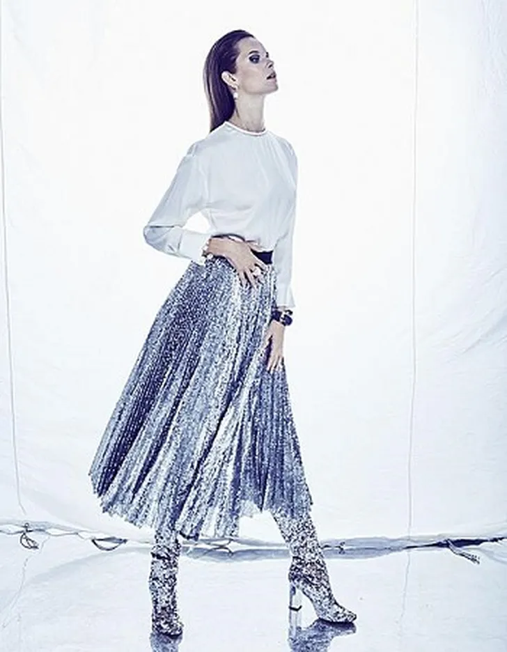 7. Deze plissé metallic rok combineert de twee trends van het moment