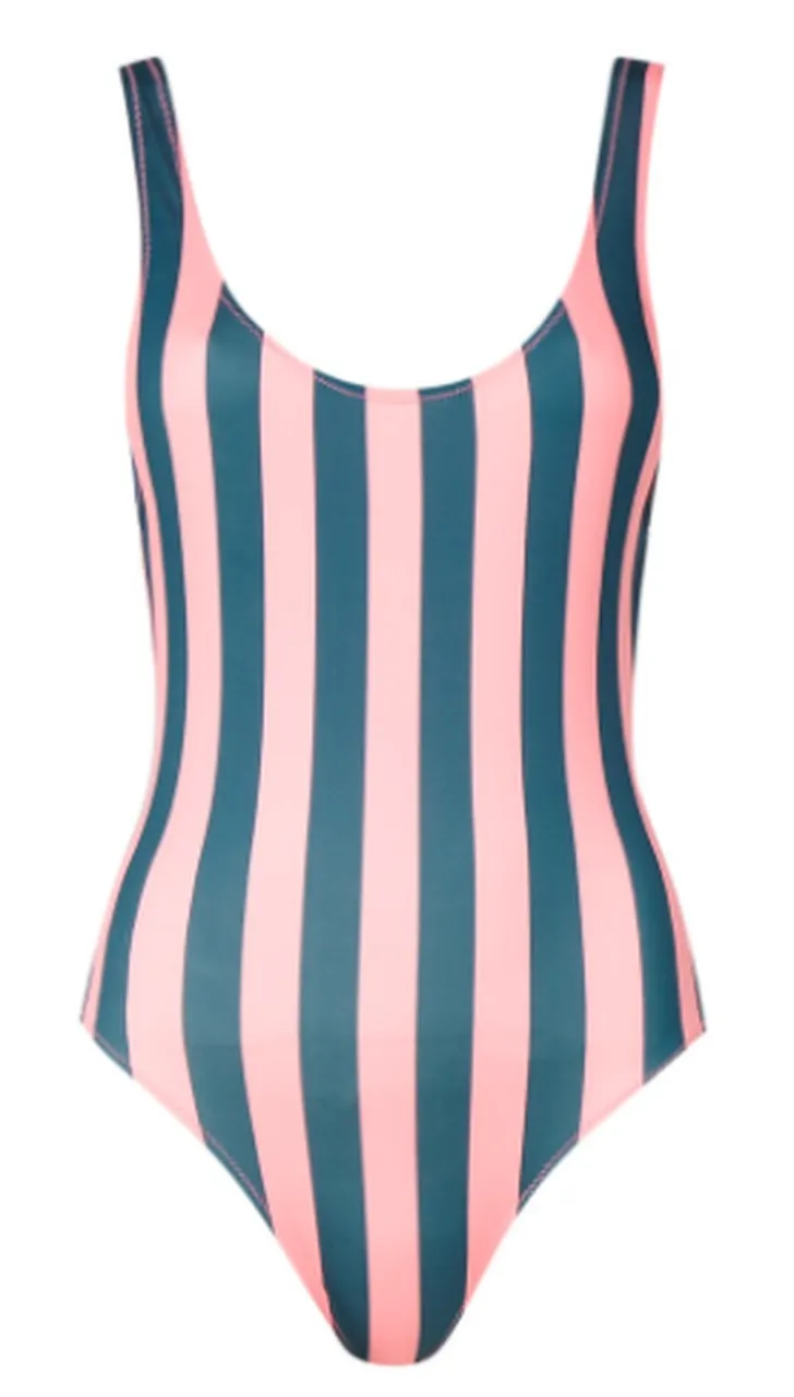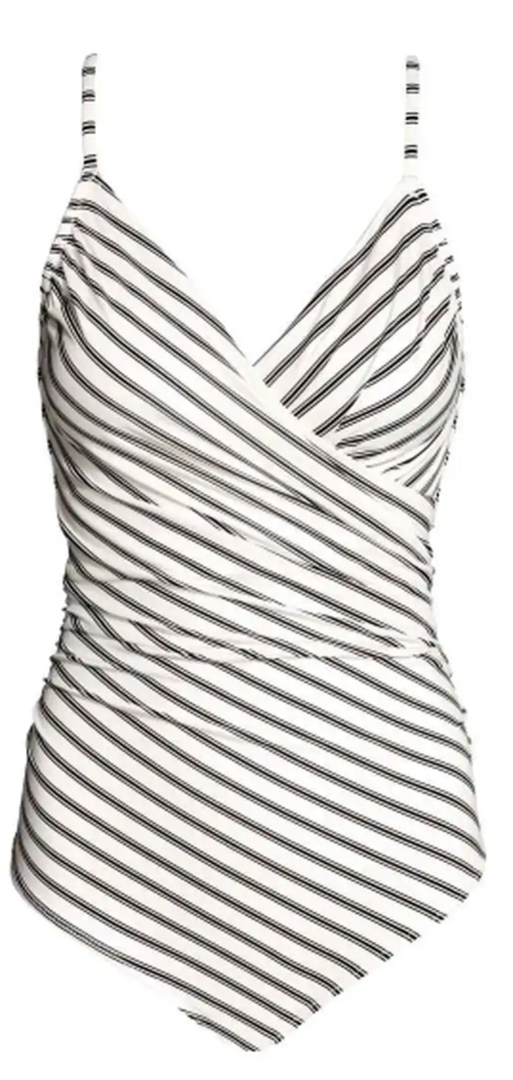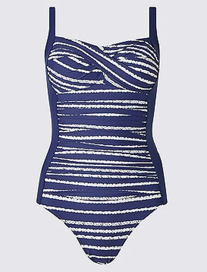 1. Gestreept badpak met shaping effect op de buik, de rug en de billen