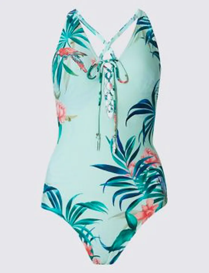 3. Badpak met 'slimming' print, waardoor de taille smaller lijkt