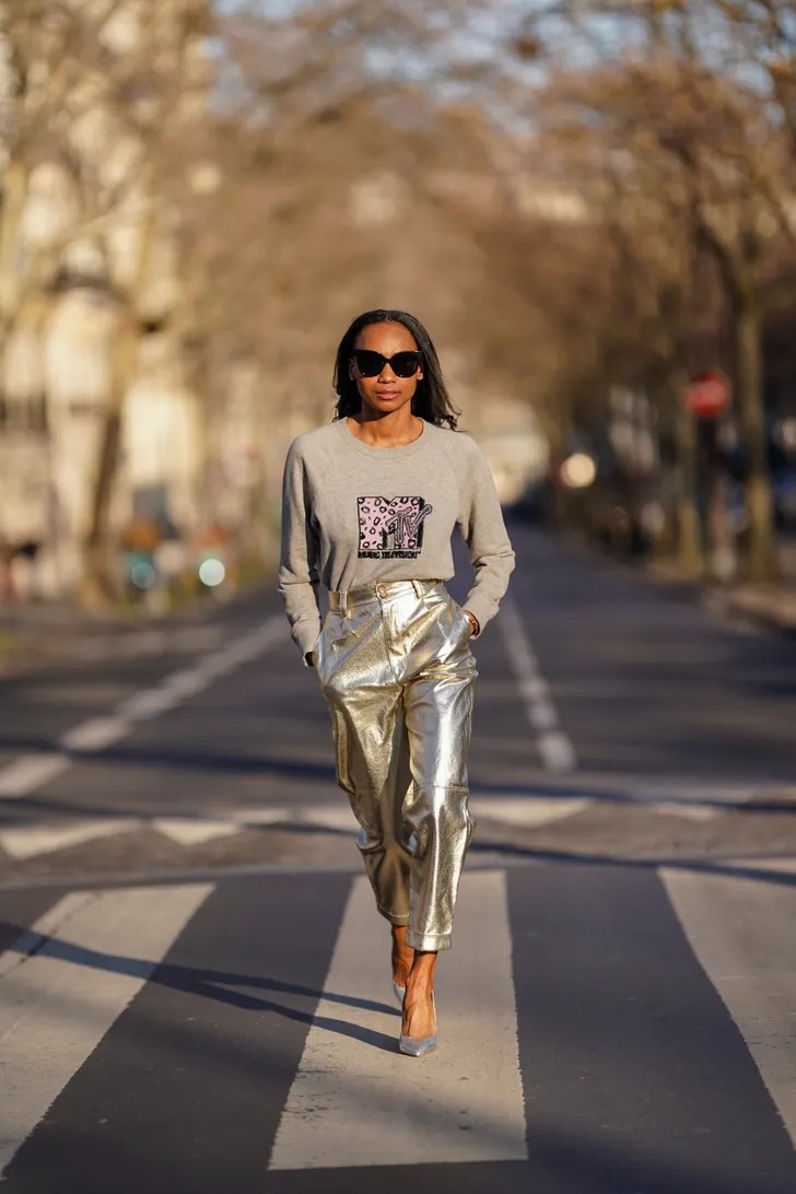 Emilie Joseph in zilverkleurig leer - Getty Images