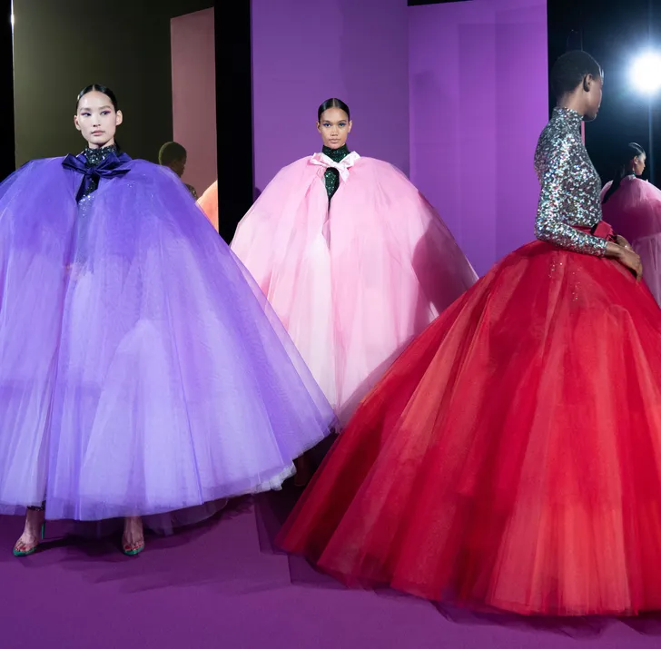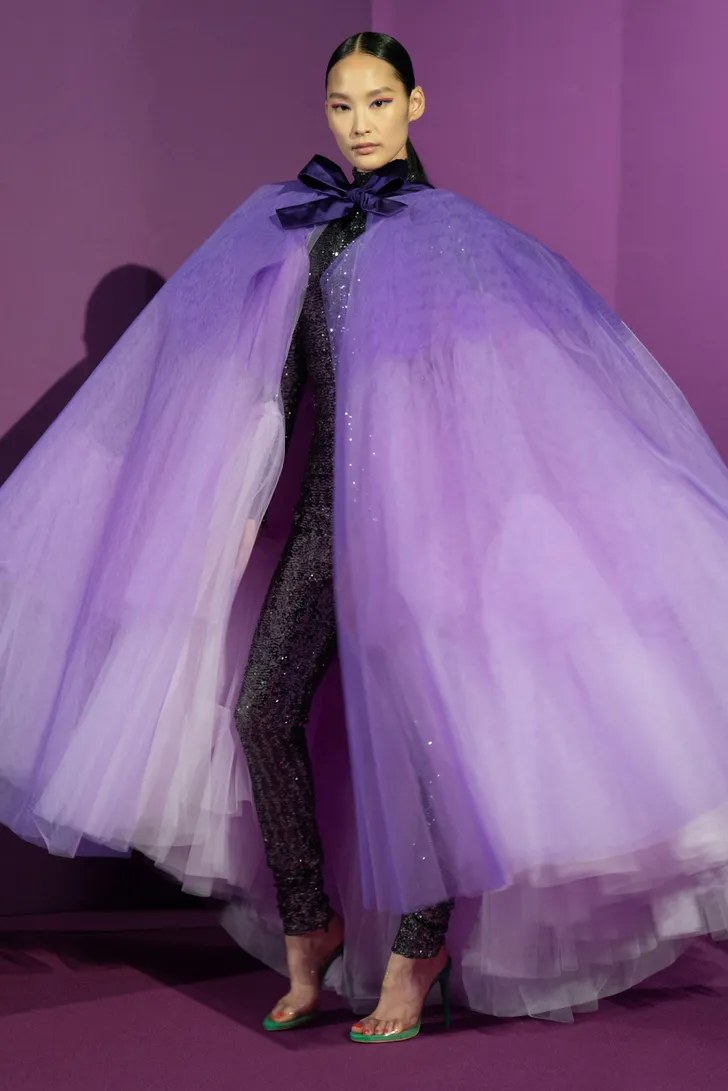 En hoe ziet dat er dan uit? Denk aan enorme hoeveelheden tule in de eerder genoemde 'millefeuille capes'…