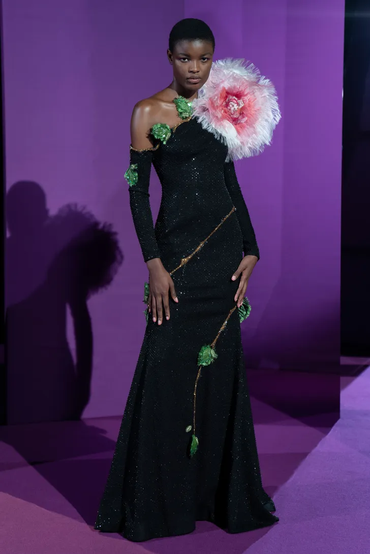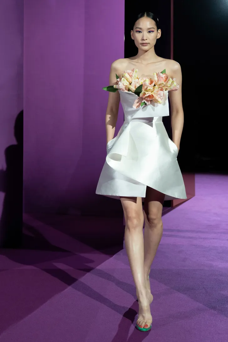 Mabille liet zich inspireren door het traditionele idee van de Femme Fleur, de vrouw als perfecte bloem. Dat bedoelt hij overigens niet letterlijk: "Ik denk meer aan de schoonheid van weer opbloeien na alle narigheid die we hebben doorstaan," zegt hij.