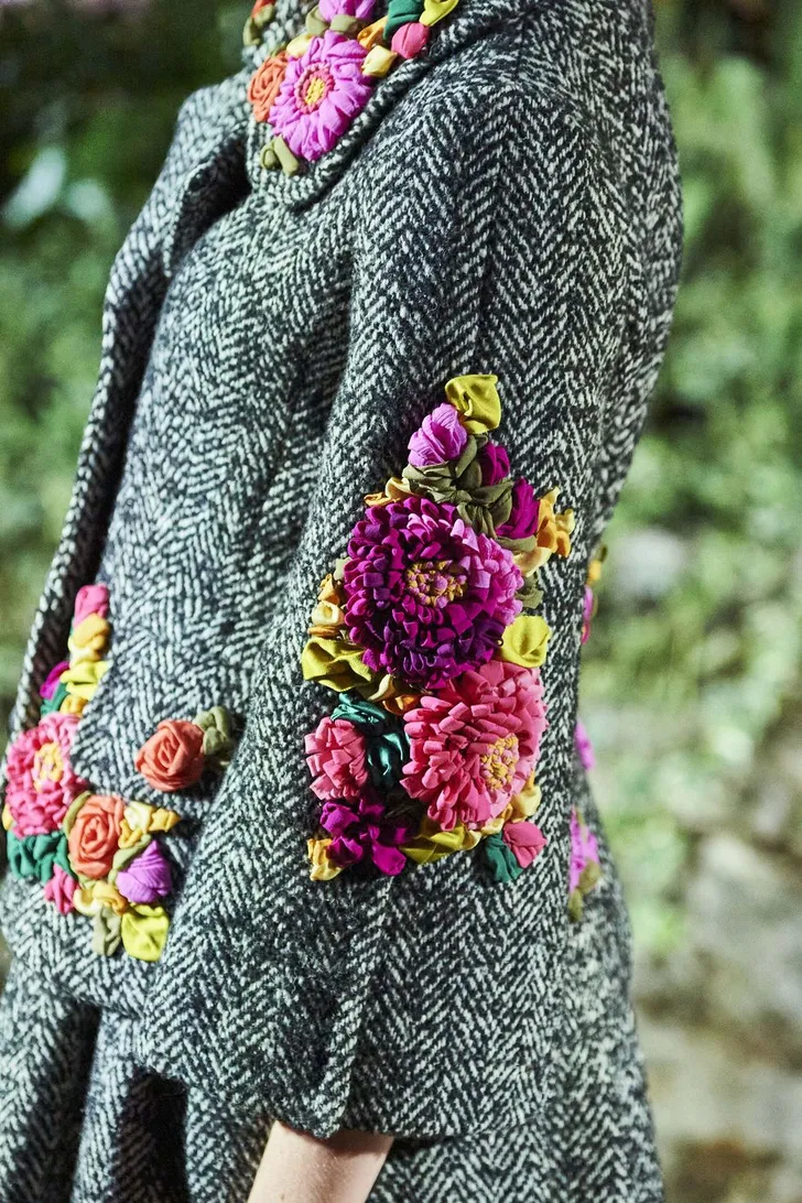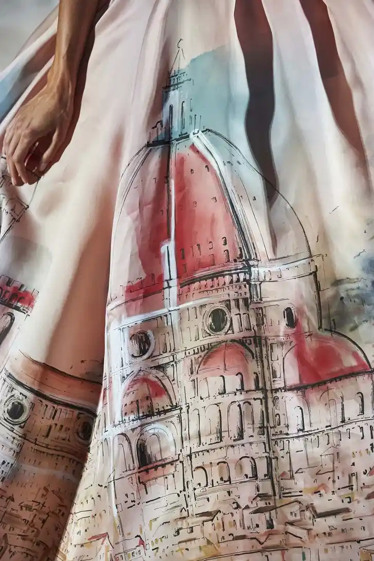 De 89 looks werden in de tuin geshowd, de modellen gebruikten de lange stenen trap als catwalk in ontwerpen die een ode waren aan de stad.