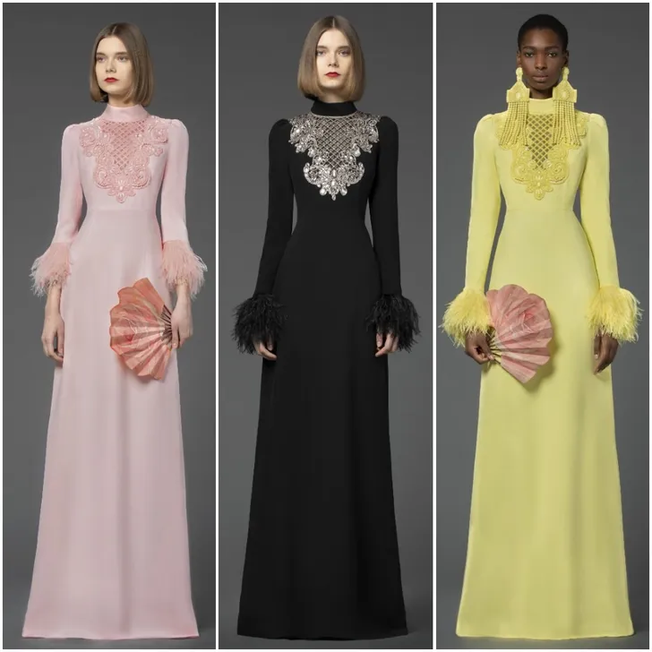 En natuurlijk de pagodeschouders die hij in 2003 introduceerde: "Heel powerful, maar ook heel vrouwelijk."