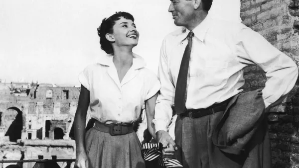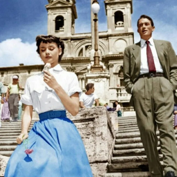 De Italiaanse modewereld zoals we die nu kennen, raakte in de jaren vijftig in zwang, met dank aan filmsterren als Grace Kelly en Audrey Hepburn (hier in Roman Holiday) en hun zwak voor Gucci...