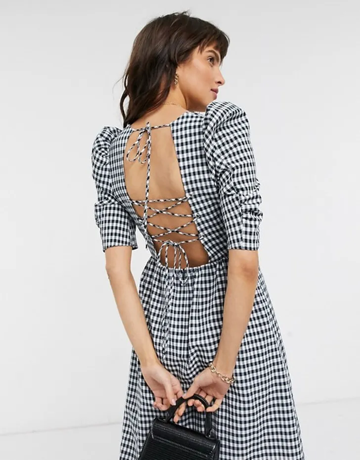 Topshop jurk met trendy pofmouwen (Asos € 38)