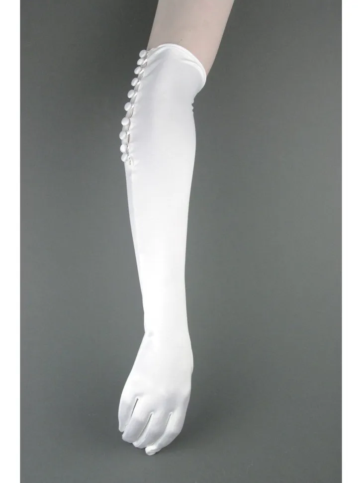 Witte satijnen avondhandschoen met beklede knoopjes (Bouffante € 20)