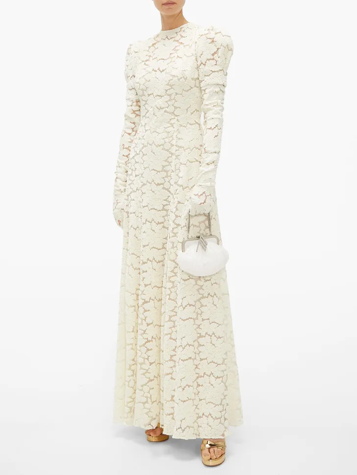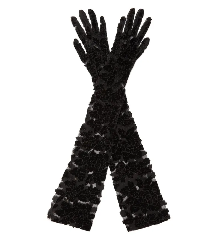 The Vampire's Wife lange handschoenen van gebloemd kant en fluweel (Matches Fashion € 474).
