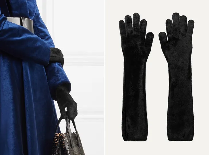 Stretch-velvet operahandschoenen van Alaïa (Net-a-porter € 140)