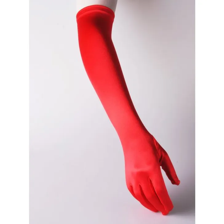 Rode lange satijnen avondhandschoenen (Bouffante € 13)