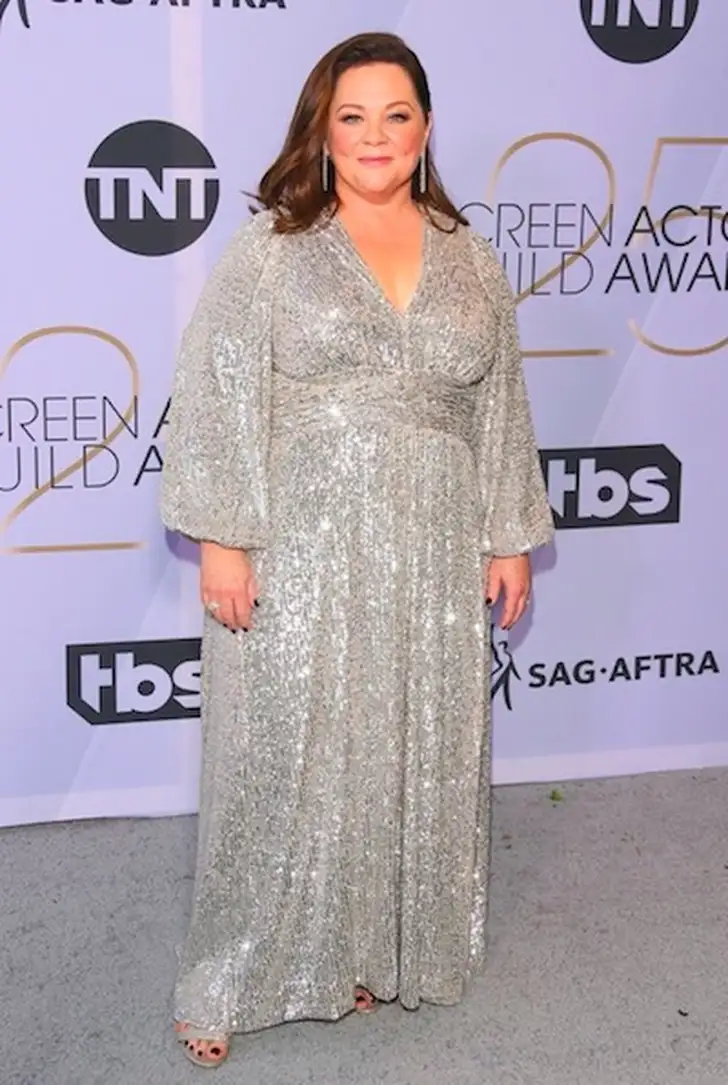 2. Melissa McCarthy (48) in een geweldige zilveren jurk van Iorane