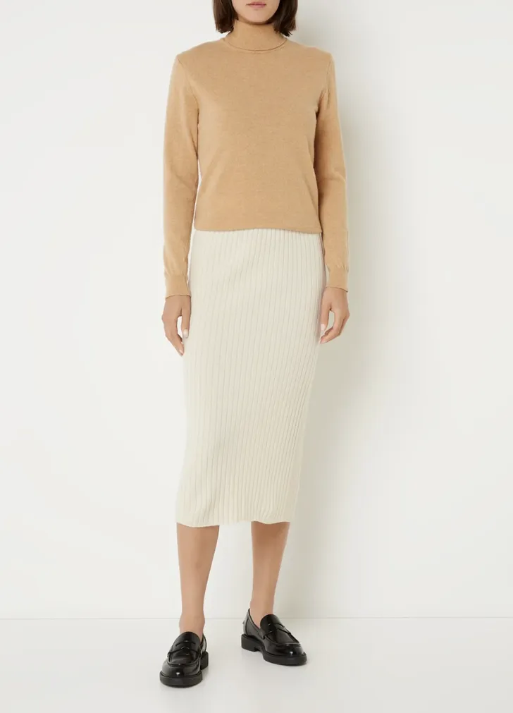 Bovendien is de look heel makkelijk te shoppen bij andere merken. Wat dacht je van deze rok van Benetton (59,95 euro bij De Bijenkorf)…