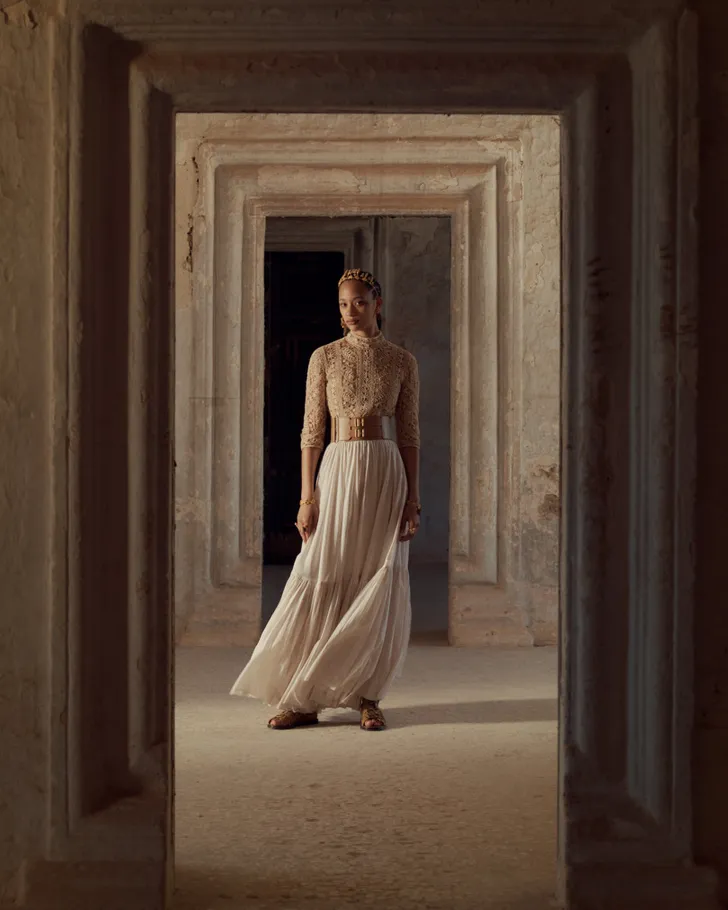 Creative Director Maria Grazia Chiuri zocht inspiratie in de traditionele ambachten van Puglia: flamboyante motieven, wilde bloemen van kunstenaar Pietro Ruffo en veel natuurelementen die doen denken aan de landschappen van Zuid-Italië. Het is allemaal heel hartstochtelijk landelijk, met een vleugje Godfather.