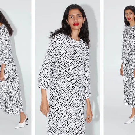 Soms is een ontwerp zo leuk dat het je niet kan schelen dat anderen de jurk ook hebben. Deze zwart-witte Zara met polkadots en een strook (45 euro) is de onbetwiste Jurk van Zomer 2019. Hij flatteert iedereen, ongeacht leeftijd en bodytype. Je kunt 'm aan naar je werk, naar een restaurant en naar een feestje. Hij is te stylen met een hakje, met slippers en met sneakers. Zit lekker, is koel en toch prettig dekkend. En is het levende bewijs dat het zin heeft om je voor jezelf te kleden en voor niemand anders.