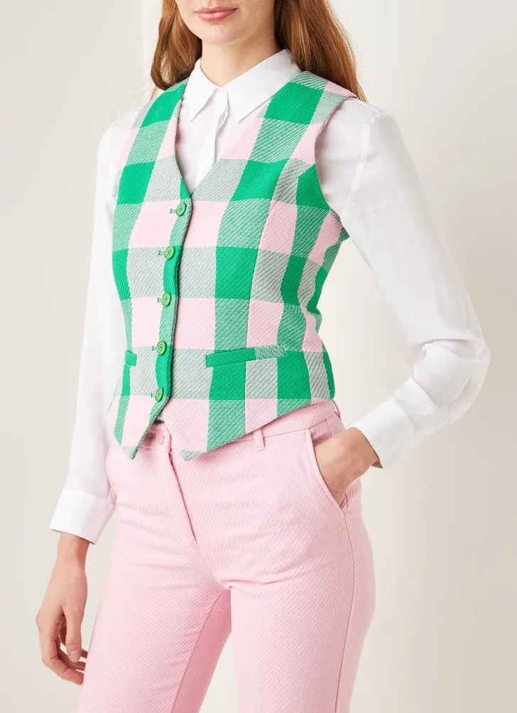Slim fit gilet met ruitdessin van Benetton (Bijenkorf € 80)