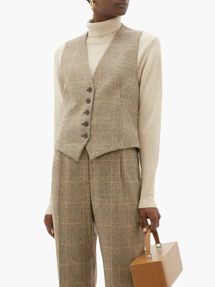 Het Angelina-vest van Nili Lotan in een Prince of Wales-ruit (Matches Fashion € 345)