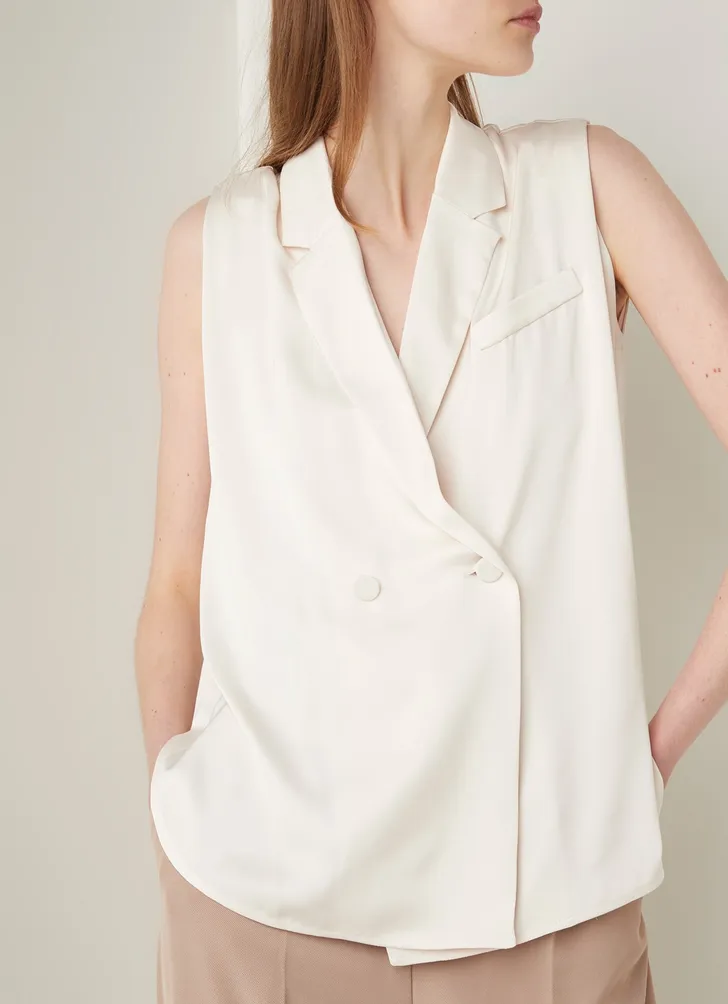Beforee gilet van satijn met knoopsluiting van Claudie Pierlot (Bijenkorf € 185)