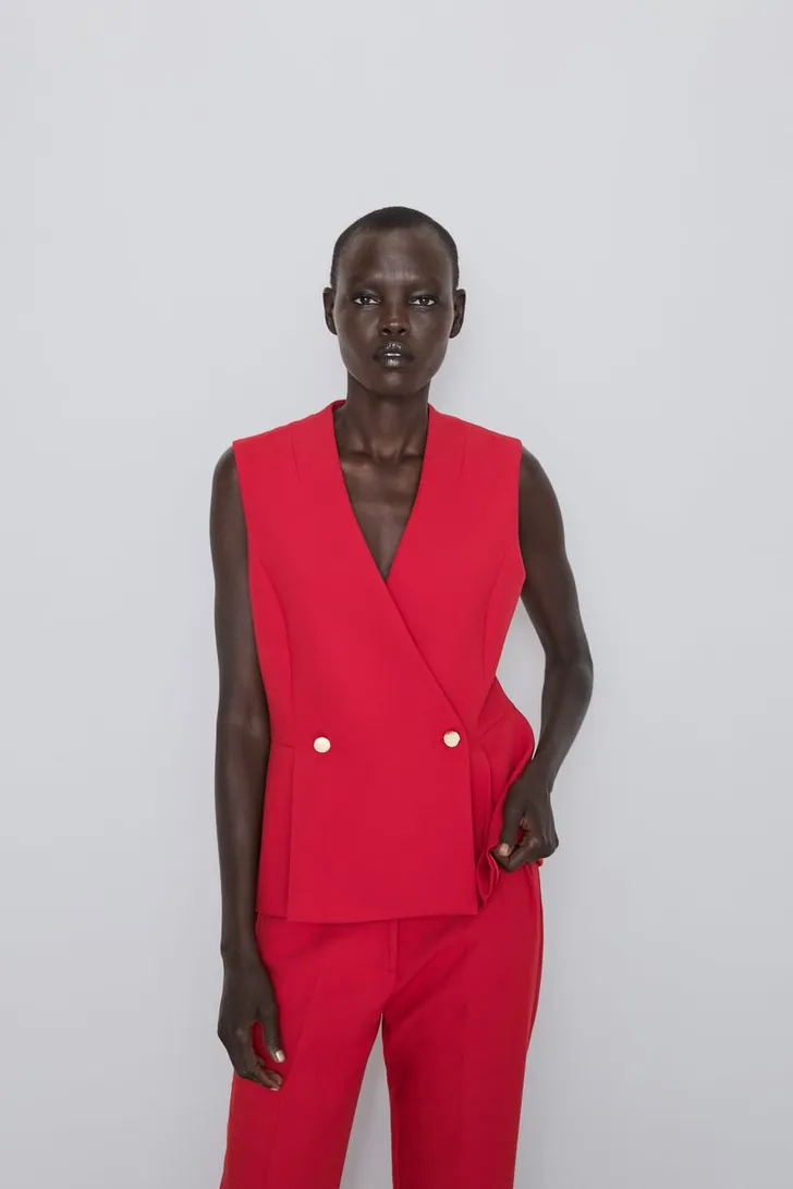 Mouwloos gilet met V-hals (Zara € 16)