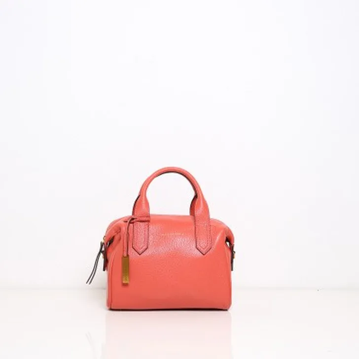 Klein maar fijn, deze tas van Smaak Amsterdam (€ 229,-) in koraalkleur.