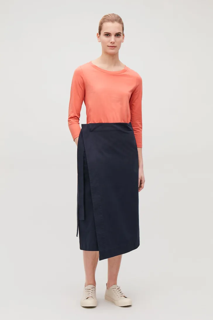 Koraalkleurige katoenen top met driekwartmouw COS € 19,-