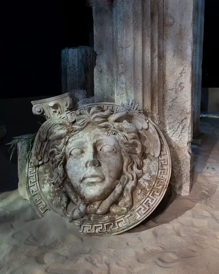 Medusa was een mooie dame die uit Athene werd verbannen door jaloerse Athena. Voor Medusa was de Acropolis geen plek die haar verwelkomde, maar juist eentje waar ze weg wilde. Om te kunnen regeren 'met kracht en zelfvertrouwen' reisde ze volgens het verhaal dat Donatella om haar nieuwe collectie spon naar een nieuwe bestemming: Versacepolis.