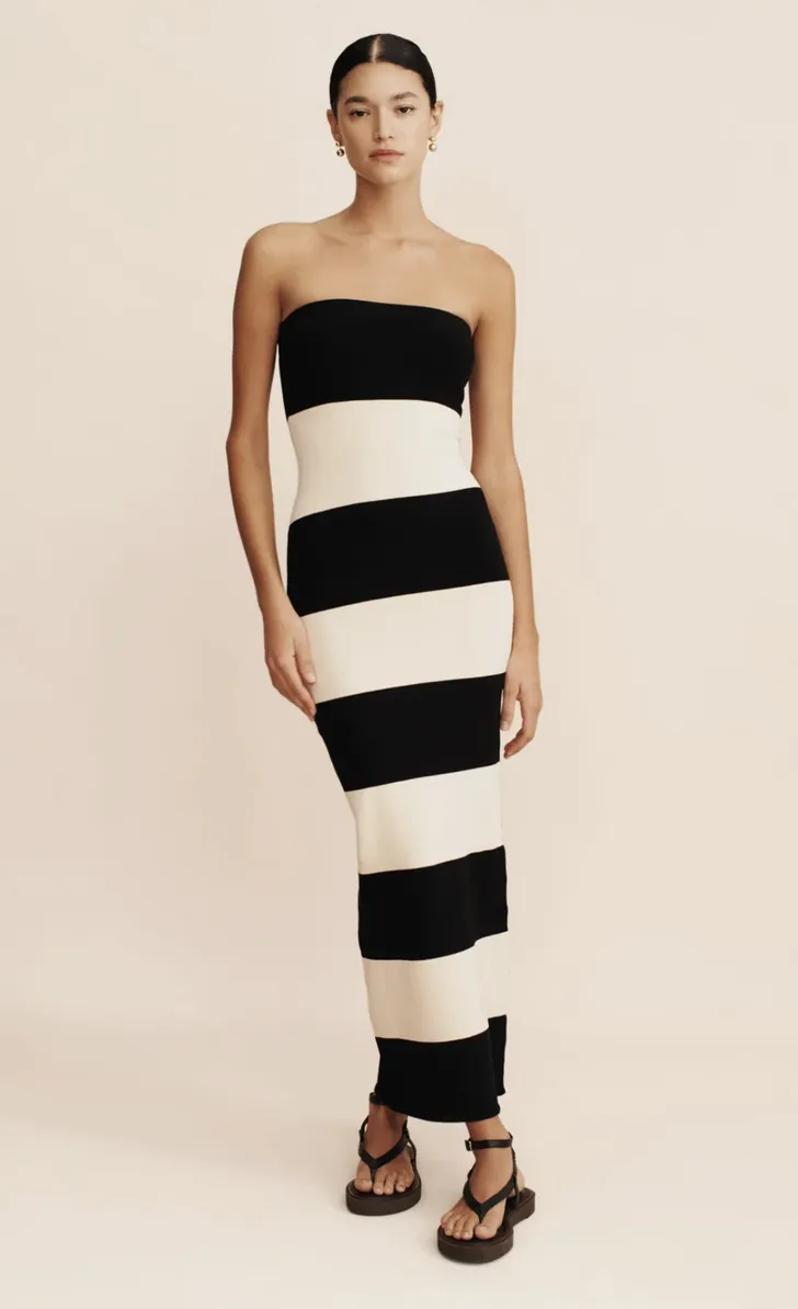 Afgelopen weekend droeg ze een strapless jurk van Posse The Label (de Theo om precies te zijn). Nog gewoon te bestellen (wel pas in oktober weer leverbaar) voor een slordige 200 euro.