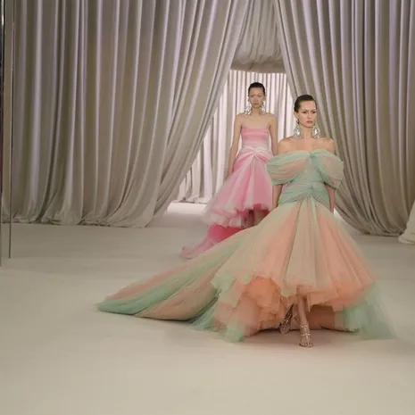 Heel erg vernieuwend is het niet – de man houdt van tule, héél veel tule – maar zijn haute couture is wél altijd optimistisch en vrolijk makend, in snoepkleuren.
