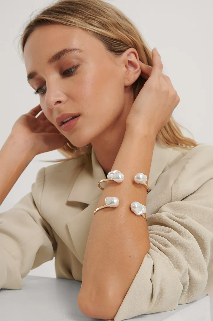 Open armband met grote onregelmatige kunstparels (NA-KD € 14)