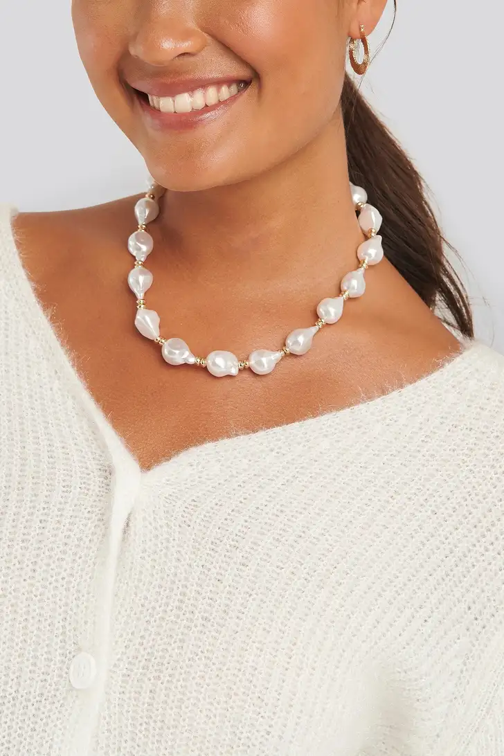Ketting met onregelmatige kunstparels (NA-KD € 17)
