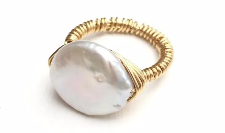 Ring met onregelmatige kweekparel (Wild Feather & Stone € 42)