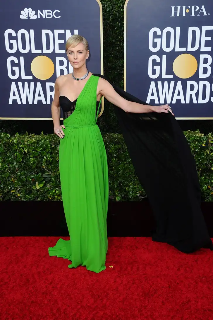Charlize Theron had haar eigen green screen meegenomen, maar het was wél van Dior.