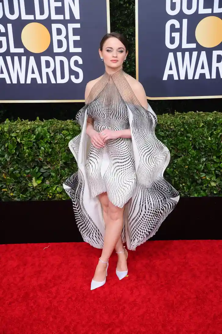 En dit is Joey King in een prachtige opengewerkte jurk van Nederlandse designer Iris van Herpen.