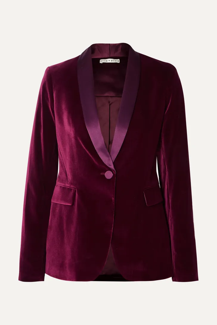 Fluwelen blazer van Alice + Olivia afgezet met satijn (Net-a-porter € 535)