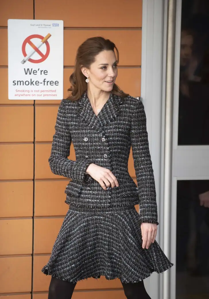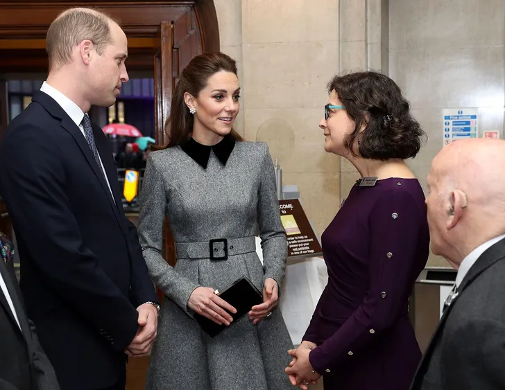 De hertogin van Cambridge in een grijze Catherine Walker…